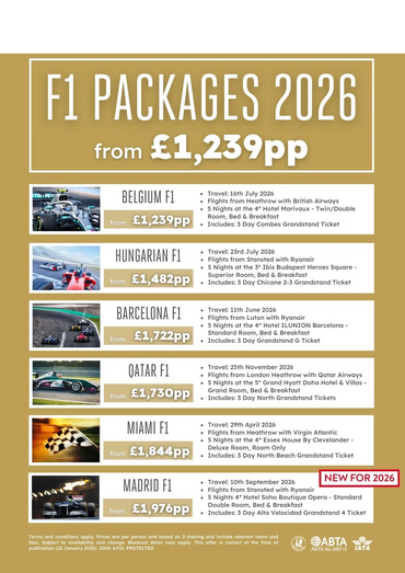 Official F1 race packages with tickets, hotels and travel included
